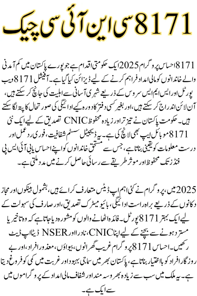 The 8171 Program 2025 offers faster registration, secure payments, and easier CNIC verification for Ehsaas and BISP beneficiaries.