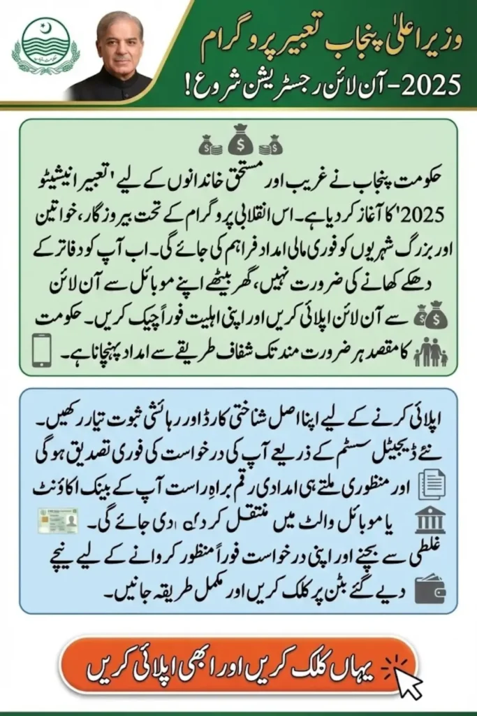 The CM Punjab Tabeer Initiative 2025 is a flagship program launched by the Punjab Government aimed at providing financial support to deserving citizens across the province. This initiative focuses on empowering low-income families and individuals, especially those facing economic challenges due to unemployment, medical emergencies, or social constraints. By introducing a transparent and efficient online system for applications, the Tabeer Initiative ensures timely assistance and promotes inclusivity in government welfare programs.