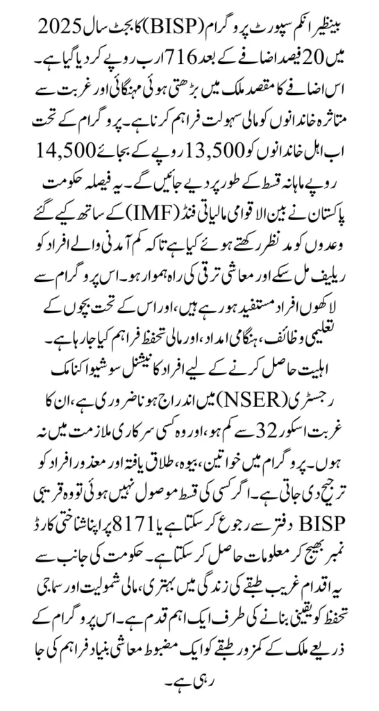 You can Also Read:BISP Quarterly Payment Increase 2025 From 10500 to 13500