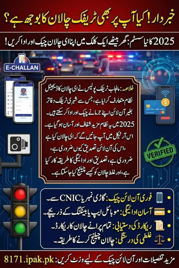 The Punjab Traffic Police have introduced the E-Challan system, a digital platform designed to streamline the process of traffic law enforcement and fine collection. In 2025, this system will allow vehicle owners to quickly check and pay traffic fines online, reducing the need for visits to traffic police offices. The E-Challan system improves transparency, accountability, and convenience, ensuring that citizens can verify their fines in real-time while avoiding legal complications or penalties.