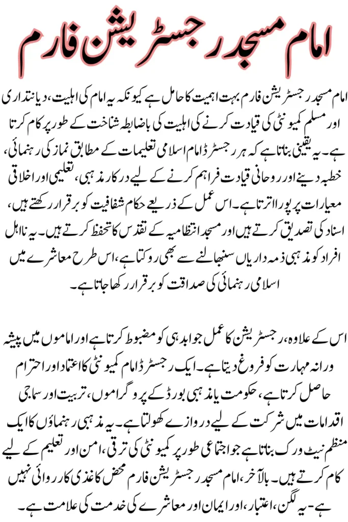 Importance of the Imam Masjid Registration Form