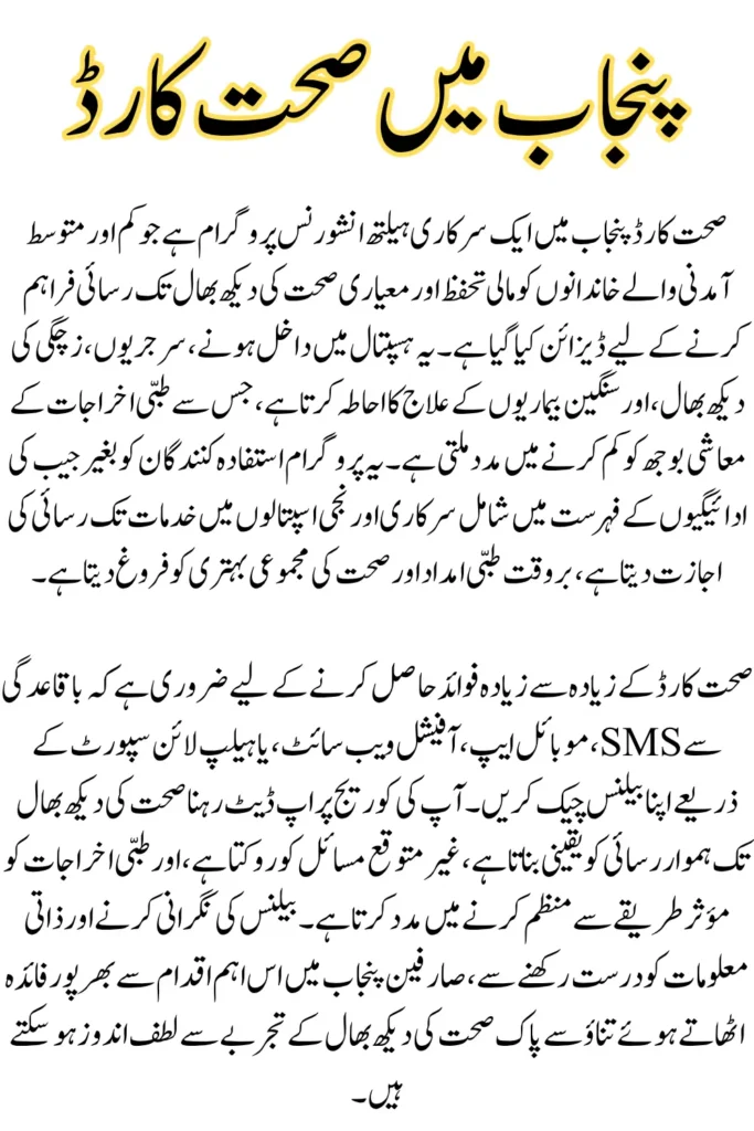 You can check your Sehat Card balance on the official website of Punjab’s health program. This method is simple and provides detailed information about your coverage and transaction history.