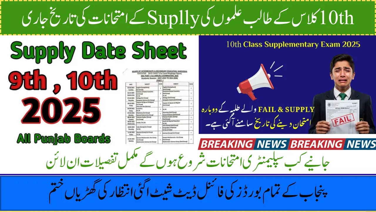 Overview of 10th Class Supplementary Exams 2025 The Punjab Boards of Intermediate and Secondary Education have announced the 10th Class Supplementary Exam 2025 schedule. These exams, also called supply or…
